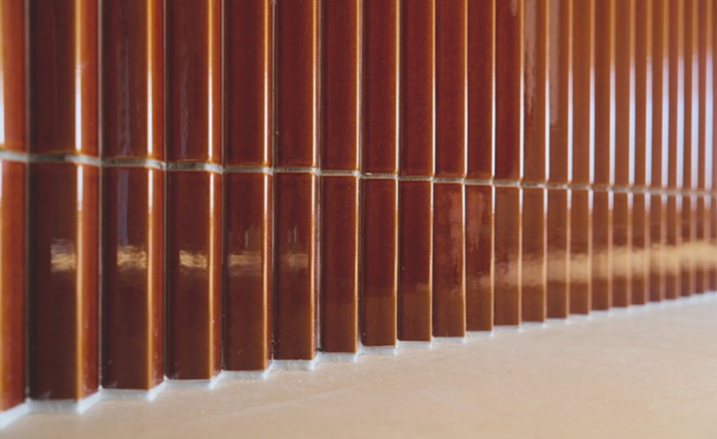 伊東: 使用するタイルの色を決める時でしょうか。海辺のキラキラ感から発想してツヤ感のあるエンジ色の三角タイルを選んだのですが、CGだけでは伝わりきらない部分があって。