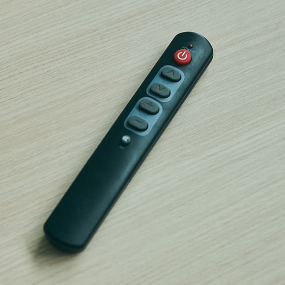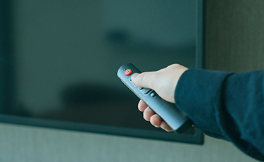 会議室のデジタル機器におけるコンセプトは、「簡単につながる、すぐに使える」。さまざまなデバイスをワンステップで使えるようにするため、マニュアルがなくても操作できるようリモコンのボタン数も最小限にしました。WEB会議システム「差すだけ、押すだけ」など、操作を迷わないようにしています。