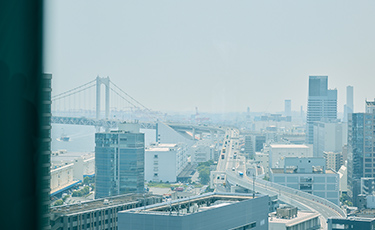 BLUE FRONT SHIBAURAは、魅力あふれる浜松町エリアに立地。東京湾を望む海景、複雑に交差する線路、東京タワーを中心とした高層ビル群など、場所ごとに異なる眺望が楽しめます。VIEWの良いエリアは極力オープンな設計にしていますので、ぜひ様々な景色をお楽しみください。