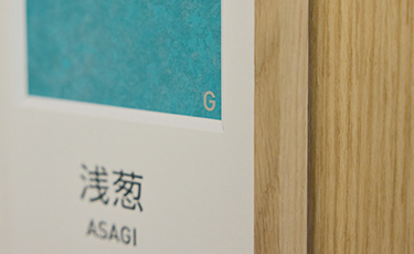 役員応接室「SALON」の会議室名は、海や空の青をイメージし、日本の伝統色から名付けました。紫苑、群青、水縹、露草、青藍、紺碧、浅葱、瑠璃――それぞれが異なる青の表情を持ち、空間に豊かな個性を与えています。このコンセプトは、オフィスから見える海と空、そして建物名「BLUE FRONT SHIBAURA」から着想を得ており、来訪者に洗練された印象と心地よい体験を提供します。
