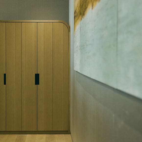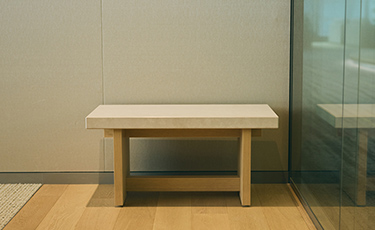 来客エリアの家具には、既製品がほとんどありません。心地よく仕事ができるように、また使い勝手のいいものにするため、三越伊勢丹プロパティ・デザイン社と1つ1つ丁寧に製作しました。