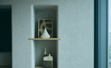 「左官の応接室」と呼ばれる部屋は、SALONに3室あります。室内は、日本の伝統的な塗り壁技術と、熟練した職人の手仕事によって生まれた左官壁に囲まれています。飾り棚には、土の質感を味わえる焼き物を配し、素材の融合によって豊かな空間を作り出しています。
