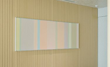 SALONのエントランスには、光の干渉による色の変化を表現したフランシス真悟氏の作品が。見る時間、場所によってアートの見え方の変化を楽しんでいただけます。