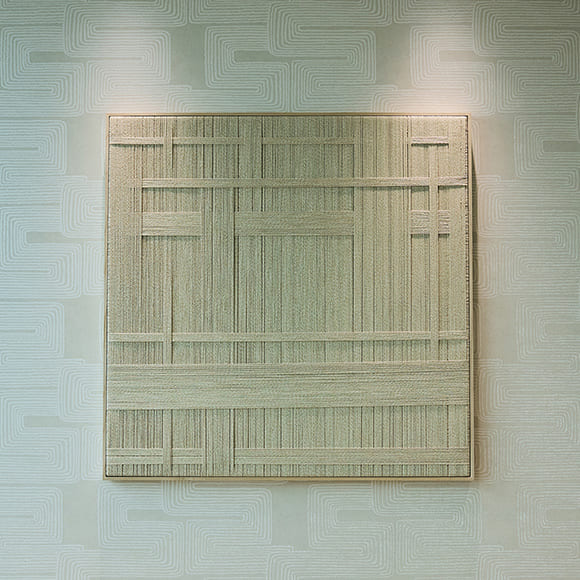 奥多摩産の間伐材から作られた糸を使用して作られた「木糸のリズム」。自然素材ならではの柔らかな質感と、人の手によって作り出されたアートは、素材と人、地域と空間をつなぐ象徴です。
