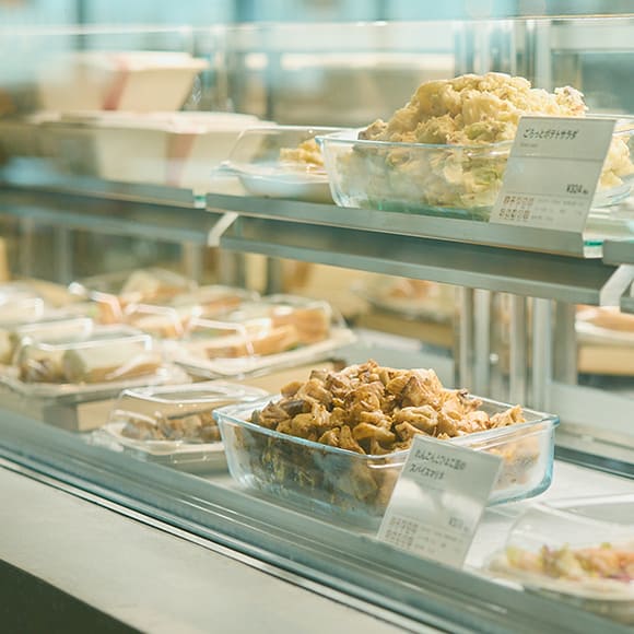 ARUMON CAFEはデリカテッセンスタイルでお惣菜を提供しており、お弁当の持ち込みもできます。食事にもう少し品数を加えたい時や、自宅での食事に役立てたい時には、お惣菜を購入して持ち帰ることが可能です。