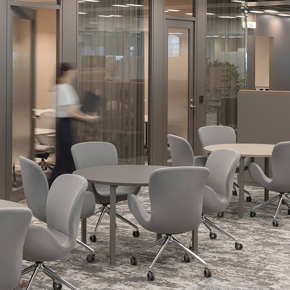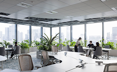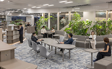 執務エリアは壁のないオープンな空間とし、コミュニケーションを取りやすい環境を実現しました。特に役員の個室を大幅に削減し、社員と同じエリアで業務を行うことで、「ちょっといいですか?」といったカジュアルなやり取りを促進し、スピード感のある意思決定を可能にします。