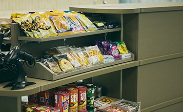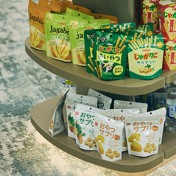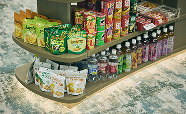 15カ所ある執務スペース内カフェにオフィスコンビニを導入し、社員のニーズに応えて軽食やお菓子のほか、日用品なども幅広くそろえました。