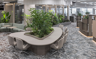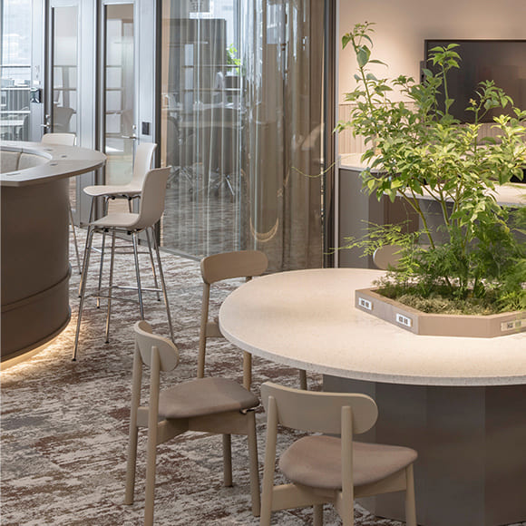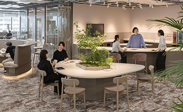 執務エリアにはエレベーターを降りてすぐのエントランスに、全フロア同じ香りのアロマを設けました。朝、出社した時、外出先から帰ってきた時に、「会社に来た・戻ってきた」と感じ、頭の切り替えができるスイッチにできればと考えています。